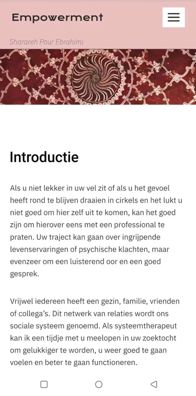 De website Empowerment van Sharareh Pour Ebrahimi was niet meer up to date en niet responsive (geschikt voor mobiel en tablet). Dat en meer moderniseringen heb ik toegepast op de reeds bestaande website (oorspronkelijk design uit 2013).